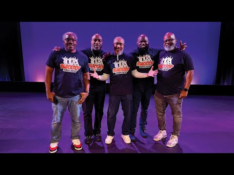 During the presentation, Speaker 1, a performer with Blacktop Improv, said, "Blacktop improv group is a group that was started, I wanna say, over 25 years ago." Another performer said the year of origin as "19 97." A third performer summarized the troupe—s founding purpose: "Back in the day, we were young comics coming up. The vision was to bring these black young comics together to, do something that hadn't been done, and that is bringing comics together to form an improv group."