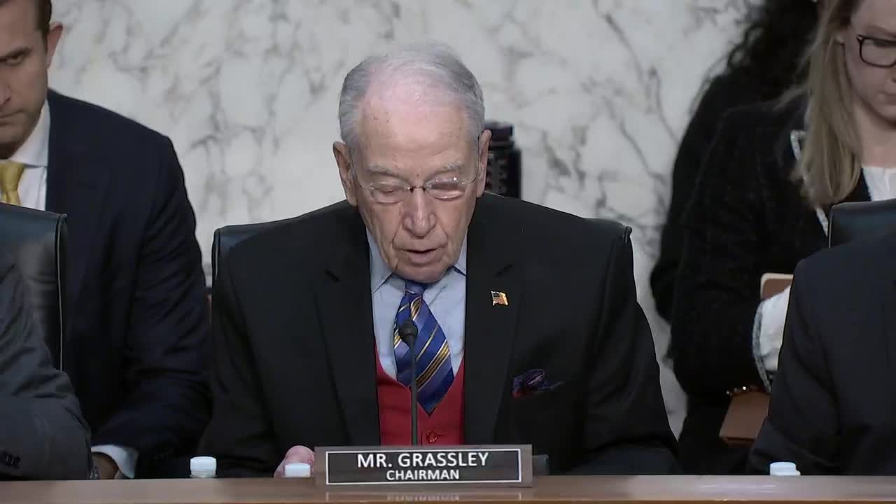 The Senate Judiciary Committee held a confirmation hearing for Kash Patel, President Trump's nominee to lead the Federal Bureau of Investigation. Chairman Grassley opened the proceedings and set the ground rules; Senator Dick Durbin and a range of other senators pressed the nominee on his public statements, prior public-service record, fundraising tied to a recording called the "J6 prison choir," and his testimony before a grand jury in the Mar-a-Lago documents matter.
