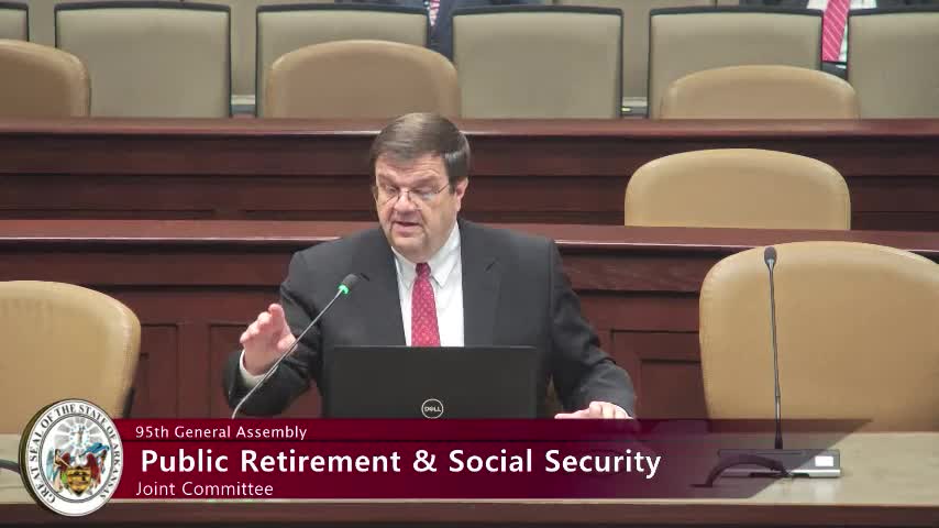State and local pension officials briefed the Joint Public Retirement & Social Security Programs Committee on funding levels, investment returns and program details. Officials said two administration bills (House Bill 1119 and House Bill 1118) will be pursued and reminded members that actuarial studies will accompany any bill affecting benefits.