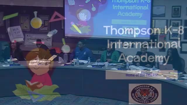 Principal Portia Eubanks and her administrative team described Thompson as an IB school offering the Primary Years Programme (PYP) for kindergarten–5 and the Middle Years Programme (MYP) for grades 6–8. The school reported supports for English Learners (two ESL teachers and paraprofessionals), five self‑contained ISSCN classrooms, therapy dog Tuesdays and 8 extended learning clubs including choir, art and mindfulness. Staff said they launched a PTSA in October and conducted a parent survey in December; the survey showed many families were “somewhat happy” with the school and leaders want to increase that to “extremely happy.”