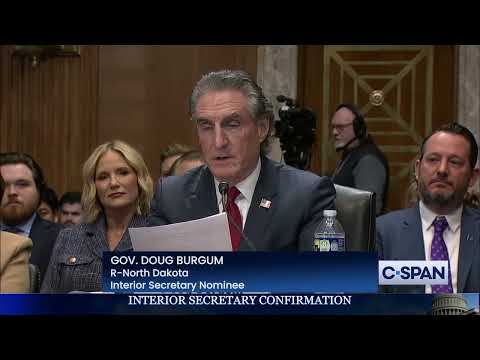 The nominee for secretary of the interior, identified in the hearing as the governor of North Dakota, told the Senate Committee on Energy and Natural Resources that he would support the administration's goal of "energy dominance" and highlighted his state-level management experience and tribal engagement.