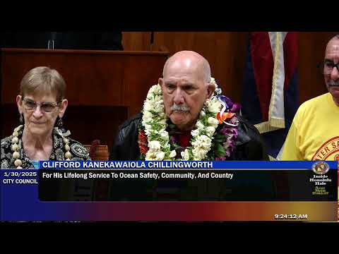 Captain Clifford Kane Kavaiola Chillingworth received an honorary certificate from the Honolulu City Council in recognition of his lifetime of service to ocean safety, the community and the country.