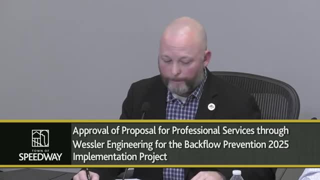 The Speedway Town Council voted 5-0 on Jan. 27 to approve a professional services proposal from Wessler Engineering for the Backflow Prevention 2025 Implementation Project. The proposal commits $8,000 for roughly 40 hours of on-call assistance over six months to help the town track, document and, as needed, assist with inspections of backflow preventers required by state law and IDEM guidance.