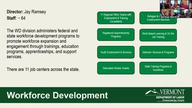 Jay Ramsey, director of workforce development, described several expansions: apprenticeship programs for wastewater-treatment operators (in partnership with the Vermont Rural Water Association), early childhood-education apprenticeships developed with the Department for Children and Families, and a commercial carpenter program sponsored by Associated Builders and Contractors. Ramsey and Harrington emphasized the role of intermediaries such as the Vermont Manufacturing Extension Center, ski-area associations and Vermont State University in aggregating employers and delivering instruction where single employers lack sufficient enrollments.