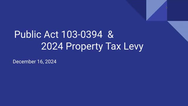 The board adopted the 2024 tax levy resolution after a presentation on Public Act 103-0394; administrators reported operating reserves are below the threshold that would require a state reserve-reduction plan.