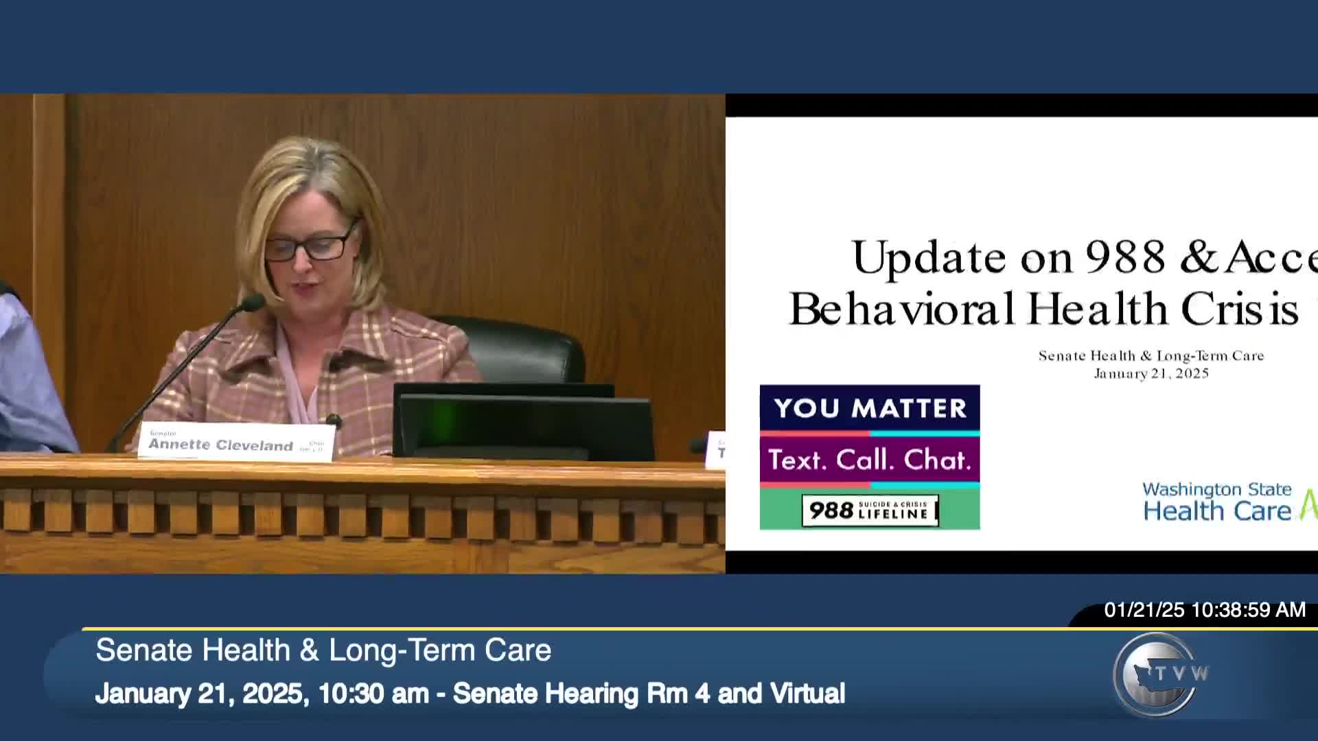 Washington State health officials on Jan. 21 told the Senate Health & Long Term Care Committee that the state has expanded its 988 crisis lifeline supports and is working to build an interoperable crisis care continuum that links the 988 contact hubs with mobile response teams and facility-based stabilization.
