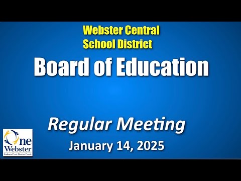 The Webster Central School District Board of Education on Jan. 14 appointed a temporary board member to fill a vacancy through the district’s May 20 budget vote and heard presentations on the district’s integrated co‑teaching program, elementary literacy trainer preparations and facility‑use trends before approving several routine financial and operational measures.