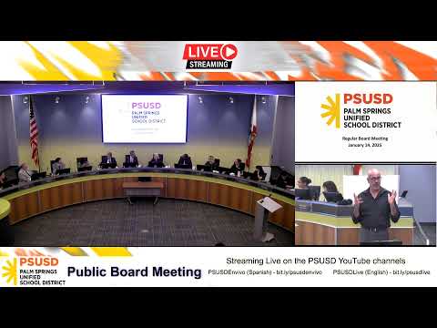 At its Jan. 14 meeting the Palm Springs Unified Board approved an employment agreement for a facilities manager, multiple grants and procurement actions, a lease‑leaseback amendment, expulsions and a proclamation recognizing board members for January 2025.