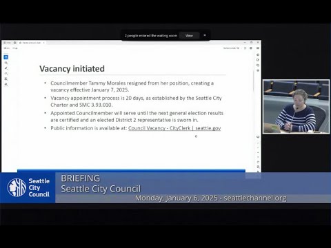 Shereen Dedmon, Seattle city clerk, told the City Council on Jan. 6 that Councilmember Tammy Morales is resigning effective Jan. 7, 2025, and that the Seattle City Charter sets a 20‑day appointment window to fill the District 2 seat.