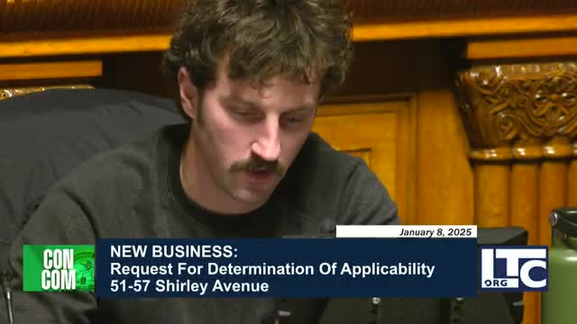 The Lowell Conservation Commission on Jan. 3 granted a Negative 3 determination for removal of a hazardous tree at 51–57 Shirley Ave and took up a separate notice of intent by the same owner for construction of a single-family home on the parcel; the NOI was continued to Jan. 22 because a DEP file number has not yet been assigned.