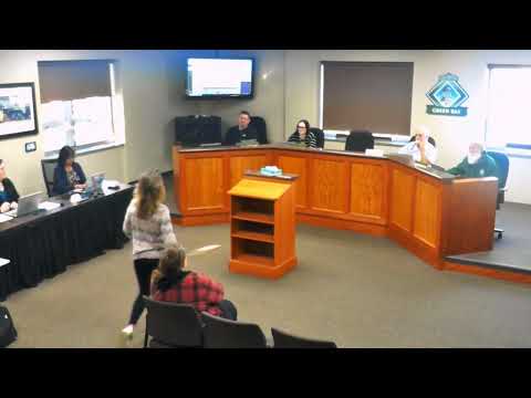 Speakers included inspection staff, a city attorney, Lieutenant Mahoney of the Green Bay Police Department, Alderman Morgan (who represents the district), and public commenters including Brandy Hibbard.