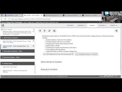 The City of College Place City Council voted unanimously on Oct. 14 to adopt its 2026 state and federal legislative priorities, to approve an ordinance allowing certain city-owned off-road vehicles and wheeled all-terrain vehicles to be used on public streets for emergency services and city maintenance, and to approve the consent agenda that included several board appointments.