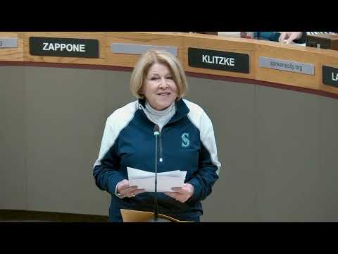 Mayor Lisa Brown delivered the City of Spokane's annual statement of conditions and affairs to the Spokane City Council, describing the city's demographics, public services and policy priorities and urging regional partners to expand behavioral-health capacity.