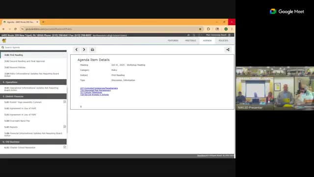 Staff told the Northwestern Lehigh SD board that the recently implemented mobile-device expectations for students (Policy 237) are being followed, with few complaints and classroom-level enforcement by teachers.