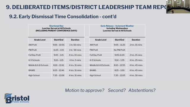 The Board approved multiple required steps to advance a roof replacement project at Bristol Central High School, including education specifications, schematic drawings authorization, request that city council establish a building committee and permission to apply for state grant funding.