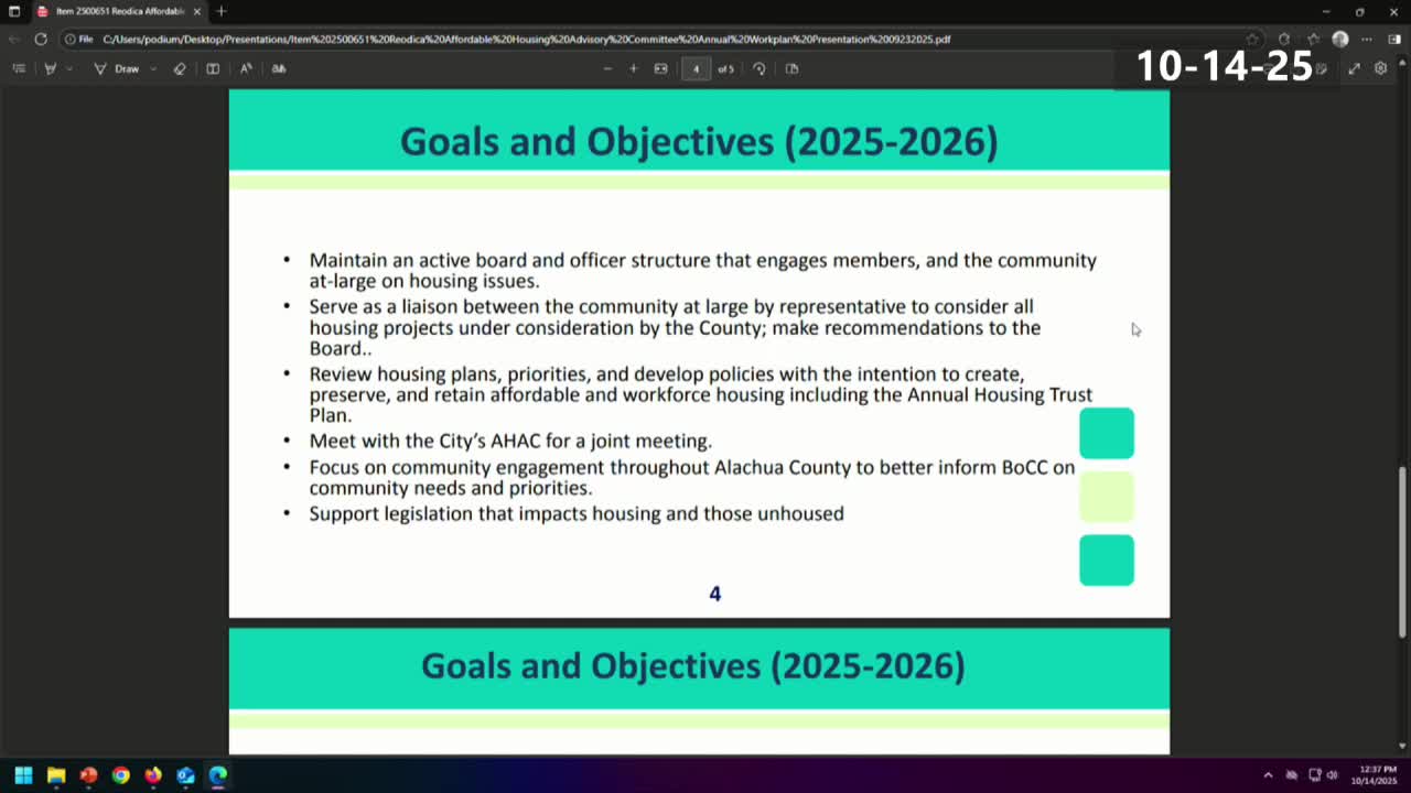 Appointments and committee actions - Healthcare Advisory Board: The commission appointed Aaron Jarvis (nonprofit health provider representative), Erica Barnard (Department of Health representative) and Catherine Ray (agency serving low-income patients) to terms ending April 30, 2027. Motion carried by voice vote. - Rural Concerns/Bridal Advisory appointments: Commissioners appointed Rodney Clouser (IFAS), Sarah Luther (ag & silviculture) and others by voice vote; motion carried. - Affordable Housing Advisory Committee: The board accepted AHAC's 2025 accomplishments and 2026 goals (voice vote): motion to accept passed.