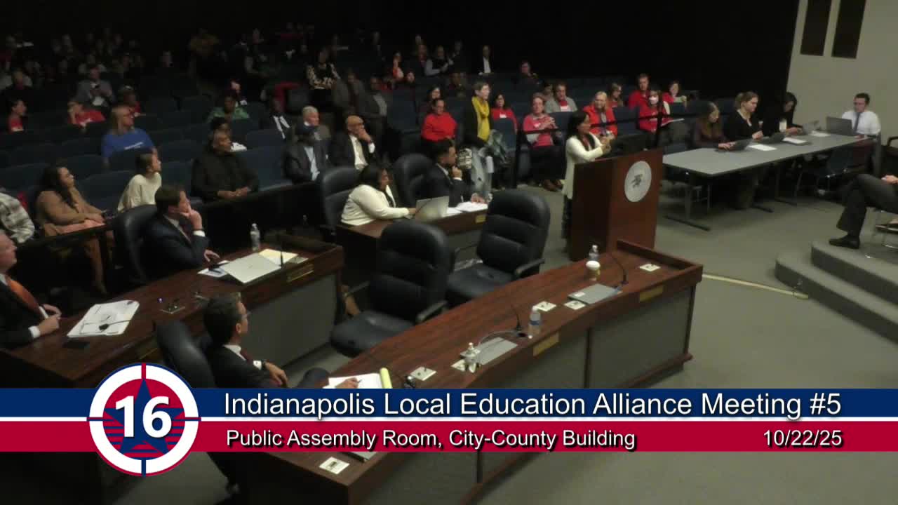 A broad cross section of parents, teachers, community advocates and neighborhood leaders used the Indianapolis Local Education Alliance public comment period on Tuesday to press the Alliance toward recommendations that would preserve a fully elected Indianapolis Public Schools board, impose a moratorium on new charter openings within IPS boundaries and require transparency in how charter schools spend locally raised property‑tax dollars.