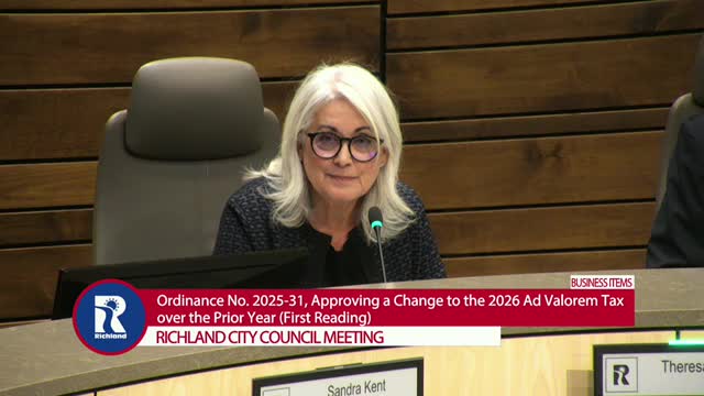 At its Oct. 21 meeting the Richland City Council approved ordinances setting the 2026 ad valorem property tax levy, choosing a 0% increase while noting valuation growth and rising sales-tax revenue.
