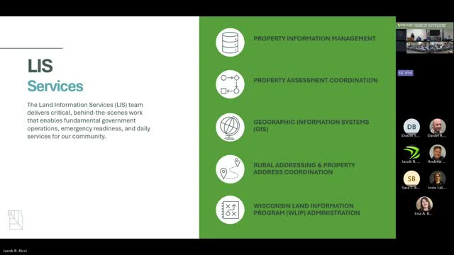 Rachel Wells, Dunn County's land information officer, told supervisors that the county's land information division maintains property records, rural addressing, geographic-information-system (GIS) datasets and public mapping tools used by county departments and residents.