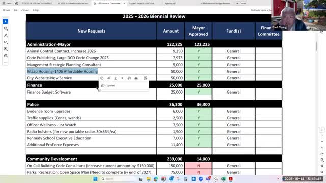 Quotes are from committee members and staff during the Oct. 14 finance committee meeting and reflect discussion and proposals under consideration by the City of Port Orchard. The committee did not record any final votes on the amendment at the Oct. 14 meeting.
