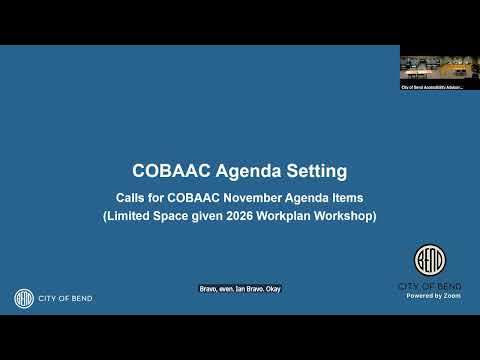 The City of Bend Accessibility Advisory Committee on Oct. 23 approved minutes for its August 28 and September 25 meetings and elected officers for the 2025–26 term.