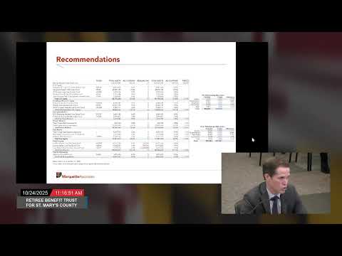 At its October meeting in the Chesapeake Building, the St. Mary's County Retirement Benefit Trust Committee approved the market recommendations (including a $1.2 million small‑cap fund swap), accepted the plan administrator report, approved the 2026 OPEB meeting schedule, and handled routine agenda and minutes approvals.