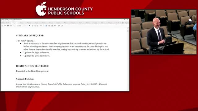 The Henderson County Board of Public Education approved 14 policy updates Oct. 13 that implement changes required by state law and add local clarifications on parental access to instructional materials and overnight rooming on school trips.