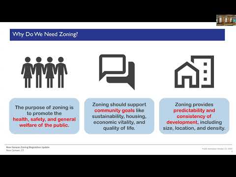 NEW CANAAN, Conn. — The Planning and Zoning Commission’s zoning regulation update subcommittee and its consultants presented the first public workshop on a yearlong effort to rewrite the town’s zoning regulations on Thursday, outlining goals, a timeline and a set of topics the team will study before drafting formal changes.