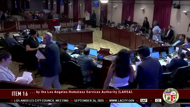 The Los Angeles City Council approved a replacement motion for agenda item 16 that authorizes a temporary funding arrangement to cover provider payments while city and county await state HUB disbursements. Councilmembers pressed for stronger repayment protections and a follow-up report.