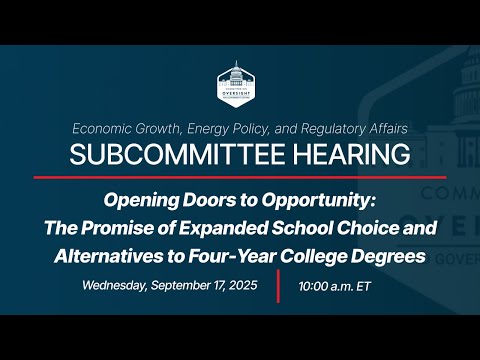 The House Oversight and Reform Committee’s Subcommittee on Economic Growth, Energy Policy, and Regulatory Affairs heard competing views on national school choice and voucher policies during a hearing that included education and workforce witnesses and members from both parties.