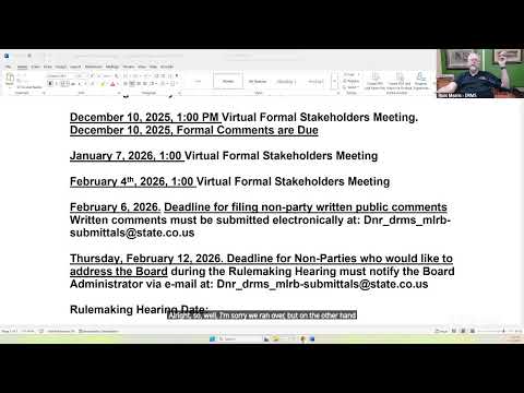 Staff emphasized that wildlife concerns remain important. The Division requires consultation with Colorado Parks and Wildlife (CPW) in pre-permitting stages when wildlife impacts are possible; staff noted the agency “relies heavily” on CPW expertise for issues like seasonal closures, critical winter habitat and migratory corridors, and that those consultations are often done before formal application to speed review.