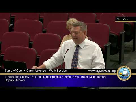 Manatee County public‑works staff on Wednesday presented a status update on county trails plans and projects, saying the county is transitioning responsibility for trail construction to public works and is pursuing a mix of developer partnerships, state Sun Trail designation and federal grants to build regional and connector trails.