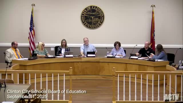The Clinton City Schools Board of Education at a public meeting approved its consent agenda and the district—inancial report for July, adopted two school board policies on first and second reading, and appointed delegates to the Tennessee School Boards Association (TSBA) assembly.