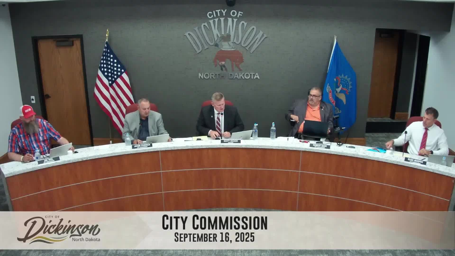 The Dickinson City Commission on Sept. 16 approved a package of ordinances, a SCADA contract, multiple land-use actions and advanced the 2026 proposed budget (first reading). After a lengthy public hearing, the commission denied a special use permit for a United Way supportive-care facility at the Evergreen building.