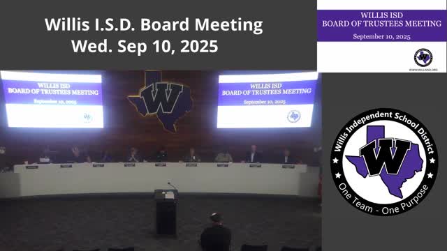 During public comment a veteran who lost his legs called on Willis ISD trustees to conduct a full ADA audit, publish a timeline for improvements and include disabled voices in planning.
