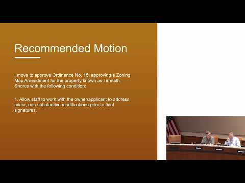 The Timnath Town Council on Sept. 9 approved annexation of roughly 81.2 acres called Timnath Shores and adopted a zoning map amendment that places about 51 acres in R‑2 and 25 acres in RE, with conditions requiring road upgrades for emergency access.