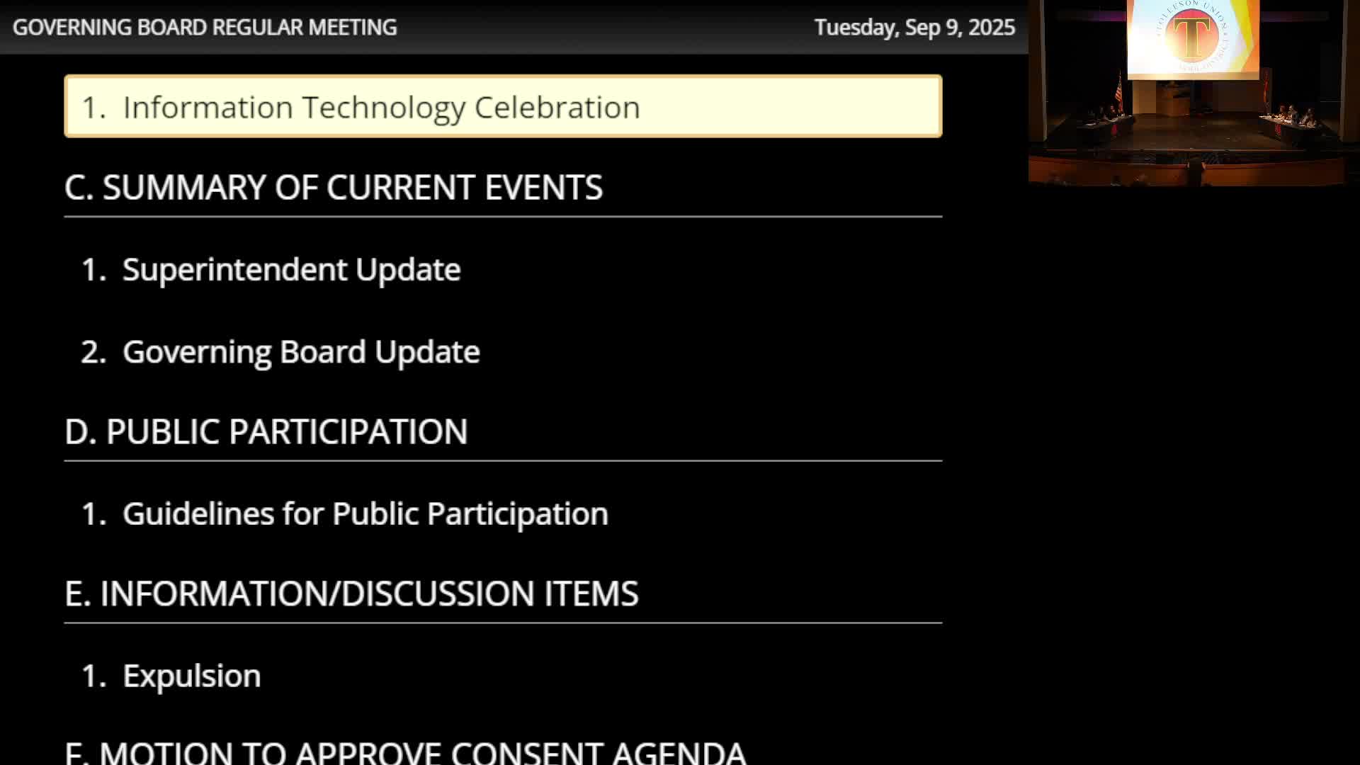 Johnny, a member of the district technology staff, told the Tolleson Union High School District Governing Board that the department completed multiple major readiness items for the start of the school year, including student devices, point‑of‑sale upgrades, bus‑route tools and network security testing.