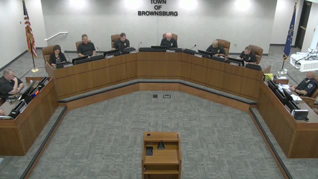 Brownsburg commissioners reviewed examples of vehicle speed-display devices and data-collection options, with commissioners and the chief saying the devices are intended for awareness and traffic-counting rather than automated citations and could be targeted to school zones and complaint hotspots.
