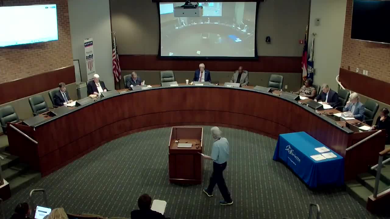 A representative identified as Griff presented the Cobb‑Marietta Water Authority report to the Marietta Board of Lights and Water, summarizing financial and operational metrics for the period ending July 31.