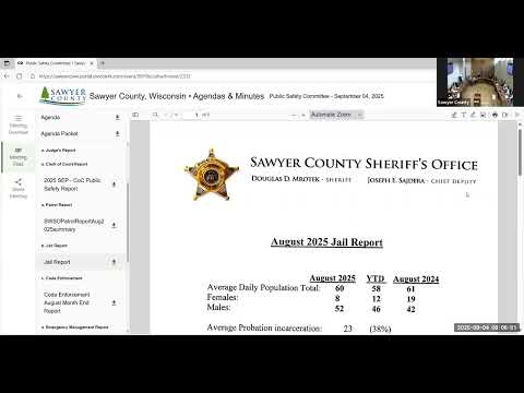 Lieutenant Rapinski of the Sawyer County Sheriff’s Office reported to the Public Safety Committee that patrol deputies handled 742 calls for service in the month, down from 921 the same month last year. He said deputies issued 61 traffic citations, 17 written warnings and 11 nontraffic citations, and that crash reporting for the year stands at 192 total crashes, 43 with personal injury and two fatalities.
