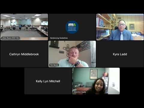 Votes at a glance - Agenda approval (motion to approve meeting agenda): moved by Commissioner Michelle Larkin; seconded by Commissioner Catherine Middlebrook. Vote: 9 yes, 0 no — motion approved. - Approval of June 5, 2025 meeting minutes (motion to approve): moved by Commissioner Middlebrook; seconded by Commissioner Larkin. Vote: 10 yes, 0 no, 1 abstention (Commissioner Lenny Castro abstained because he was not present at the earlier meeting) — motion approved. - Final approval of modifications in parts A, B3, B4 and C of the commission's 06/16/2025 notice of public hearing (motion to approve): moved by Commissioner Michelle Larkin; seconded by Commissioner Richard Frase. Vote: 11 yes, 0 no — motion approved. - Adoption of director Wright's alternative language for part B1 (child exposure to fentanyl), as submitted in written public comment (motion to adopt alternative language): moved by Commissioner Catherine Middlebrook; seconded by Commissioner Marlon Mazaros. Vote: 11 yes, 0 no — motion approved. - Adoption of director Wright's alternative language for part B2 (consecutive sentence requirement for assaulting a jail deputy, implementing Minn. Stat. 609.2232, new para. b) (motion to adopt alternative language): moved by Commissioner Michelle Larkin; seconded by Commissioner Moore. Vote: 11 yes, 0 no — motion approved.