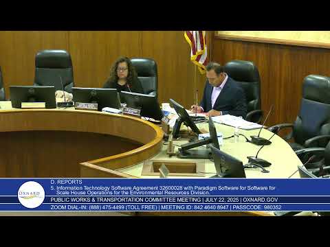 The Oxnard City Public Works and Transportation Committee voted 3-0 to recommend that the City Council approve an information-technology software agreement with Paradigm Software to support scale house operations for the Environmental Resources Division.