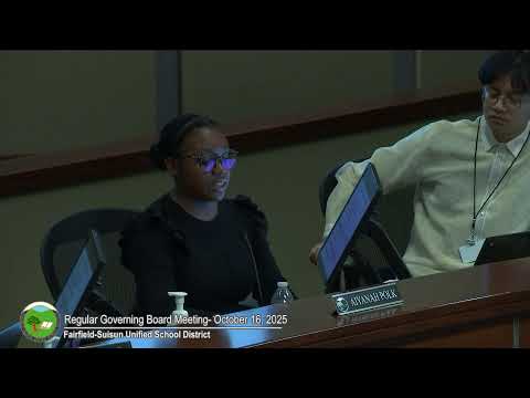 Several members of the public addressed the Fairfield-Suisun Unified School District board during the Oct. 16 public comment period on topics including domestic violence awareness, allegations of bullying within a girls volleyball program, and a request for district support for a local weekend food‑bag program.