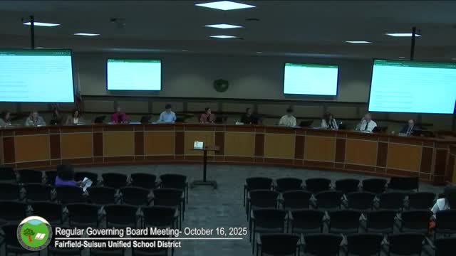 Fairfield-Suisun Unified School District’s governing board on Oct. 16 approved changes to the district’s English-learner reclassification criteria and a revised classified substitutes salary schedule, then rejected a proposed one-year extension of a contract for a retreat facilitator after extended debate.