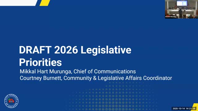 City Schools of Decatur on Oct. 14 reviewed a draft of the district’s 2026 legislative priorities, which district staff said will guide advocacy during the second year of the biennium in the Georgia General Assembly.