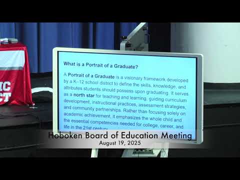 Dr. Johnson, superintendent of the Hoboken Public School District, presented a near-final draft of the district’s Portrait of a Graduate at the board’s August meeting, saying the initiative will guide curriculum, instruction and resource allocation across K–12.