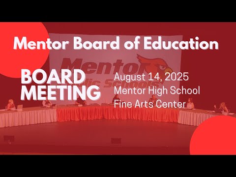 Madam President and members of the board held a required public hearing Aug. 14 on the Mentor Exempted Village School District’s proposed 2025–26 budgets for federal programs including IDEA (special education), Title I, Title II-A, Title III (LEP), Title IV and preschool early childhood funds. Chief financial officer Mr. Wade presented the budgets and invited stakeholder comment; no members of the public offered remarks during the allotted hearing period.