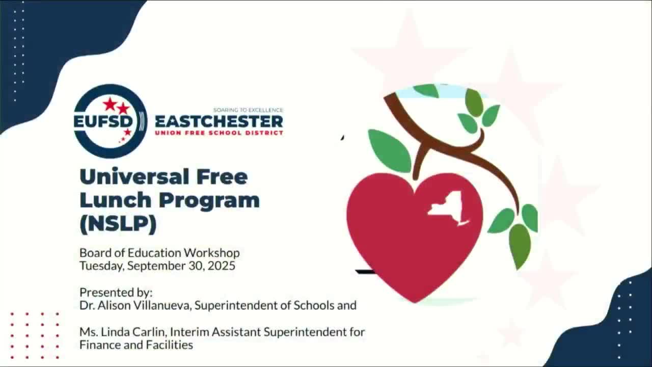 At a board meeting, the Eastchester Union Free School District discussed the state—9s new universal free school meals program, reviewed survey results showing strong interest from families, addressed allergy, capacity and vendor concerns, and approved a consent agenda that contained four business office recommendations tied to the item.