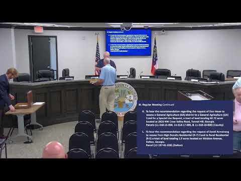 - Geographies: Antioch Drive area (county), Crow Valley Road, Nelson Kyle Road, Rollins Ketchum Road, Peak Road, Prospect Road, Lafayette Road, Wagner Drive, Crow Valley Road event center site, Walston Avenue (city of Dalton). - Impact groups: nearby single-family homeowners, prospective small-lot buyers, event-venue employees, applicants proposing commercial uses. - Funding sources: no budget appropriations or bond actions were proposed or decided at the meeting.