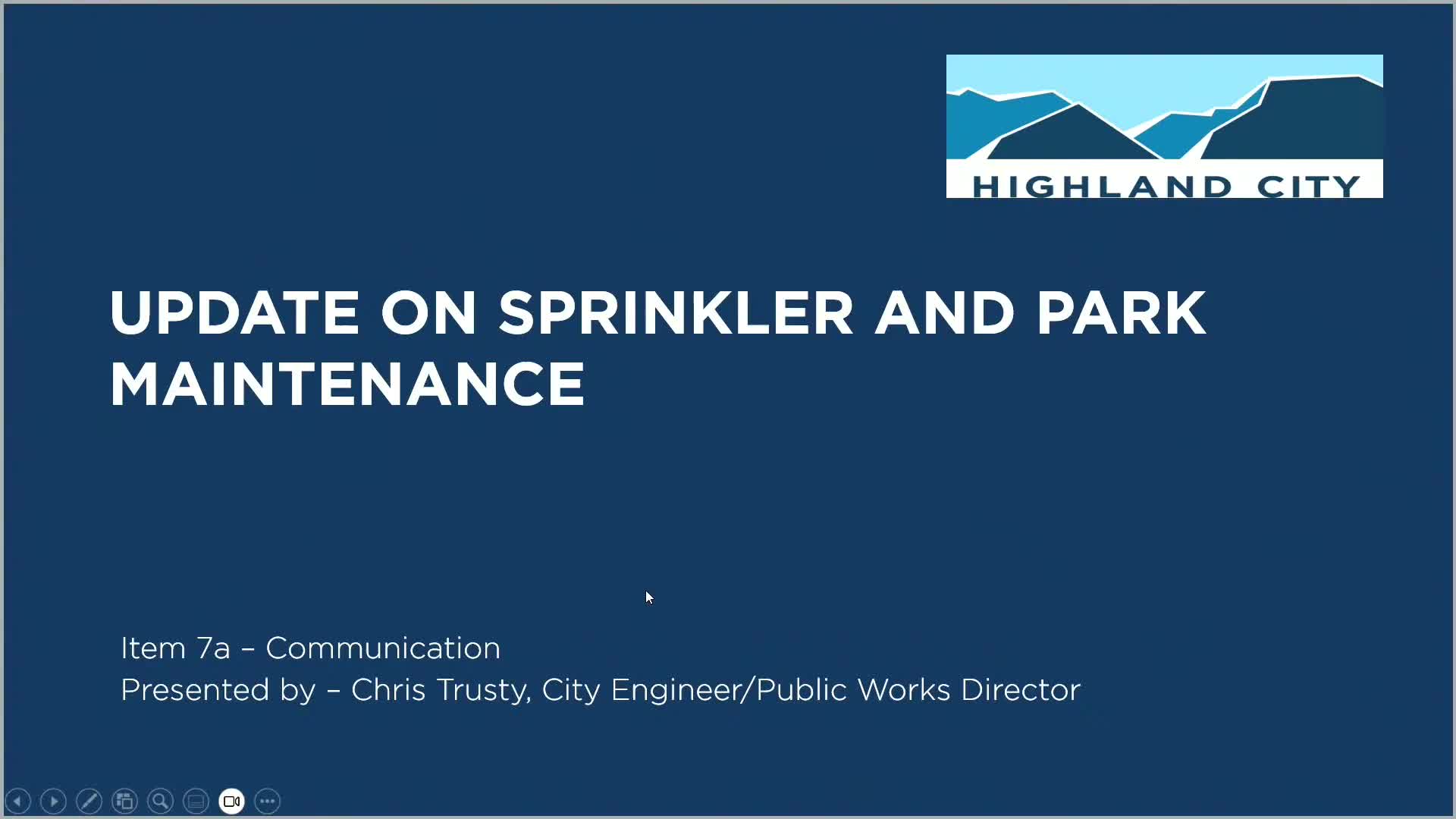 Highland public works and parks staff described ongoing work to clear irrigation filters, add temporary water stations and prioritize athletic fields and high-use parks while new pumps come online at 6000 West.